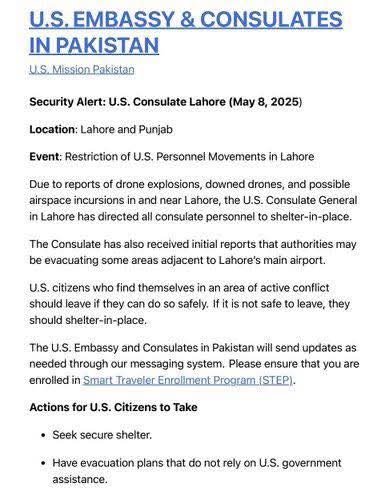 লাহোর ছাড়ুন বা নিরাপদ স্থানে আশ্রয় নিন, নির্দেশ মার্কিন দূতাবাসের