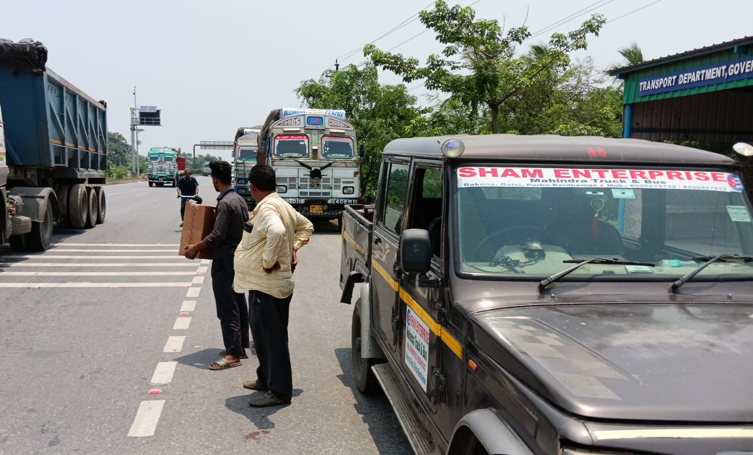 যাত্রী প্রতীক্ষালয়ের সামনে দাঁড়িয়ে ট্রাক। ব্যবহার করা যাচ্ছে না প্রতীক্ষালয়।